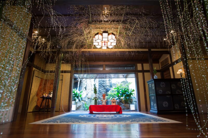 中庭の水鏡と、それを見渡せる「水鏡の間」は、谷口吉郎による設計です。
