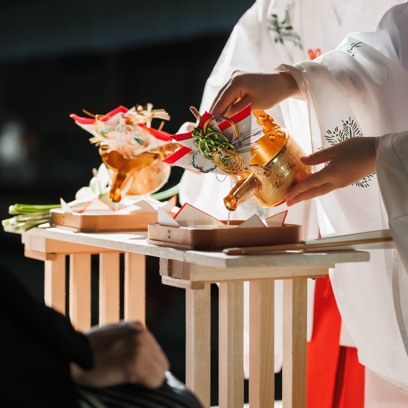 神社に祀られている神様の前に、厳かに結婚を誓う「日本古来の伝統的な挙式スタイル」。