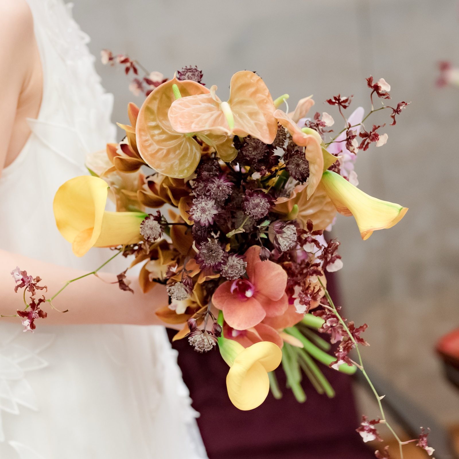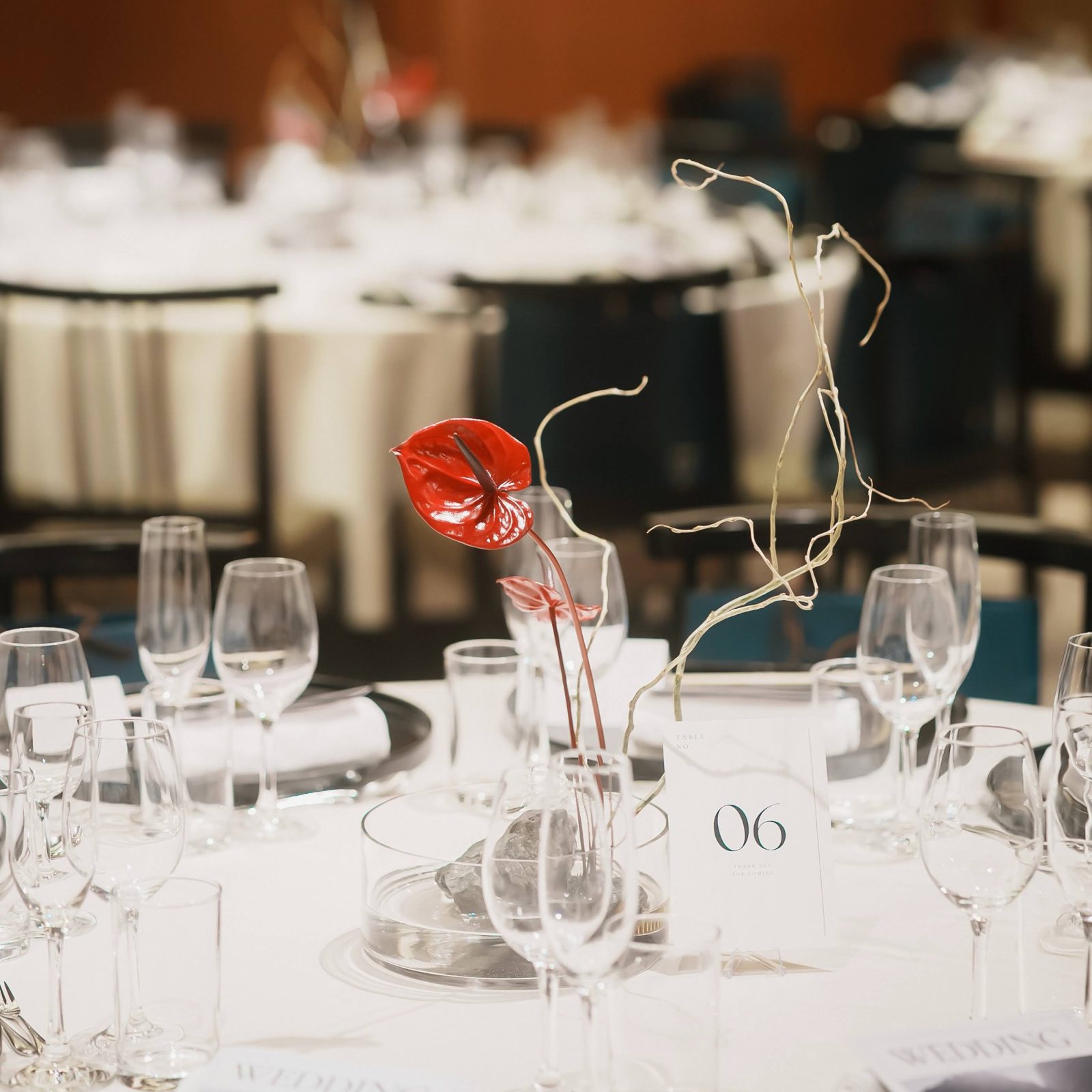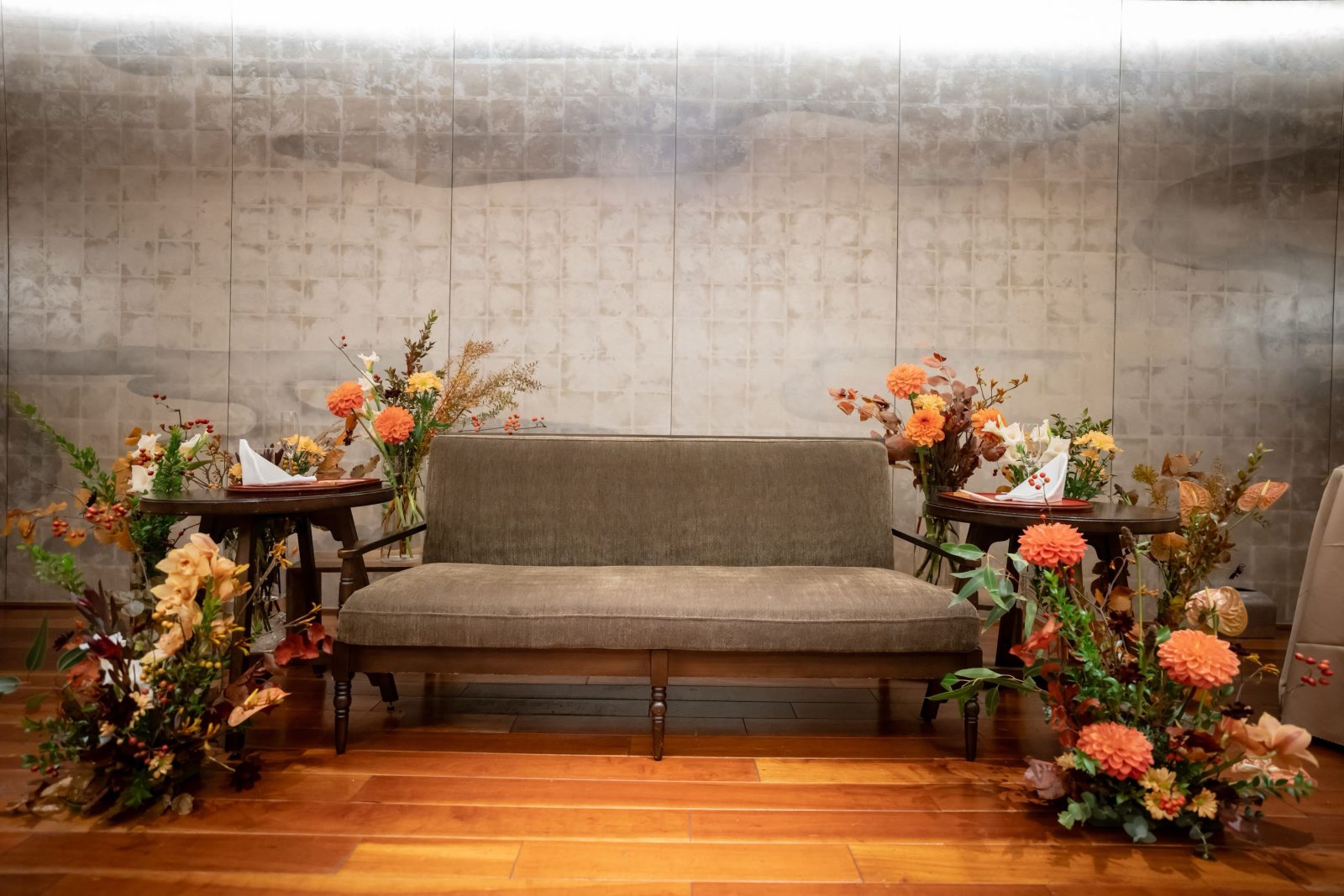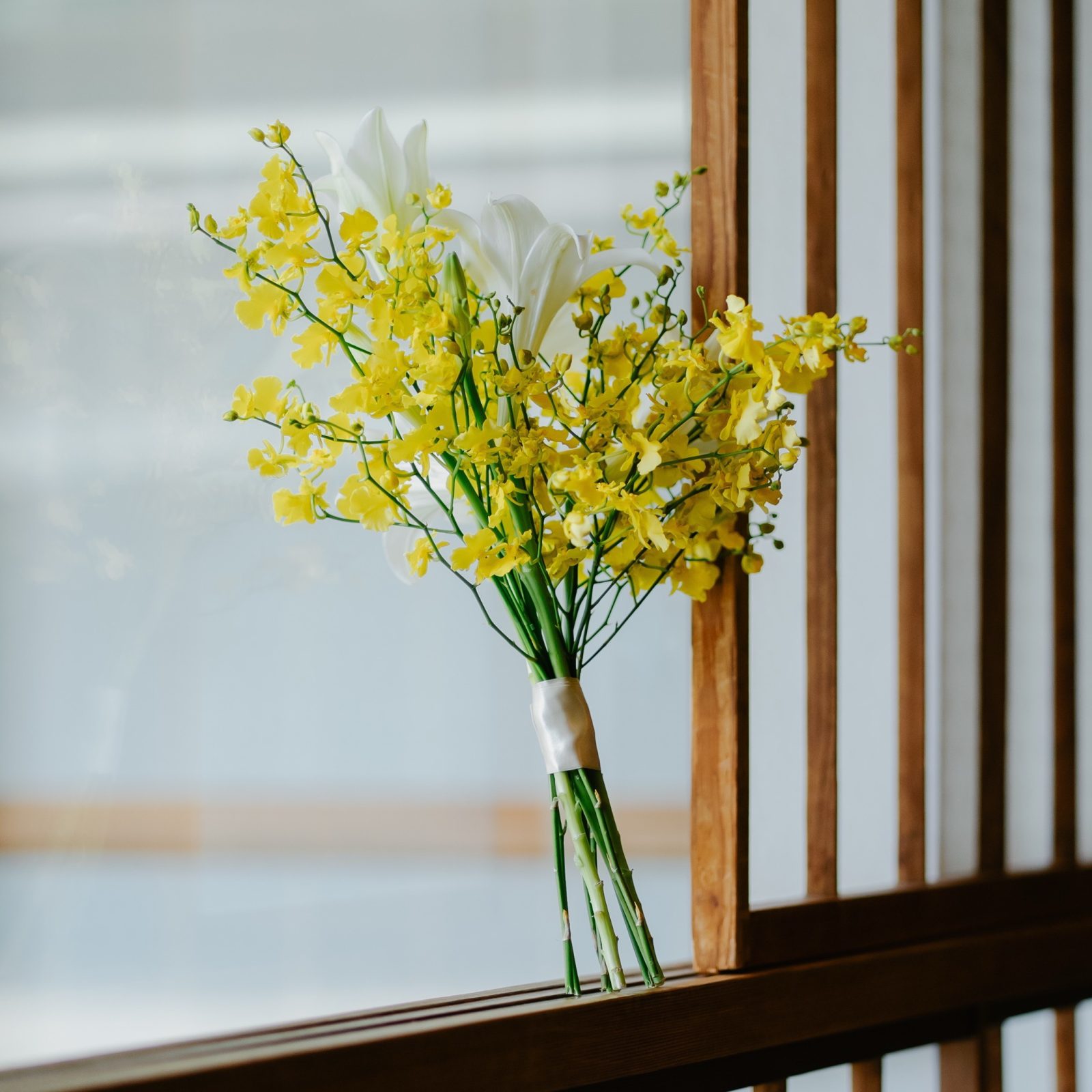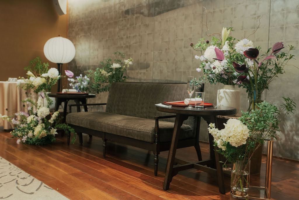 カタログからあるものを選ぶのではなく、専属のフラワーデザイナーがおふたりの想いを形にします。打ち合わせの中で一緒にイメージを膨らませながら、ブーケやブートニア、会場装花をトータルコーディネートいたします。お花の種類や色、咲き方にいたるまでこだわり、おふたりの思い描く空間を実現いたします。
