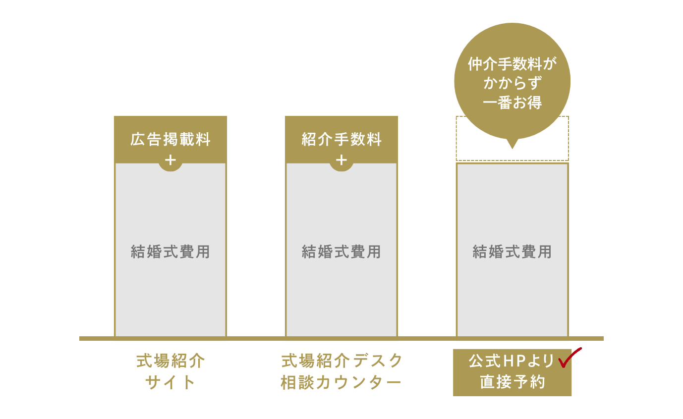 他の式場紹介サイトや式場紹介デスク・相談カウンター経由にてご予約をいただく場合よりも